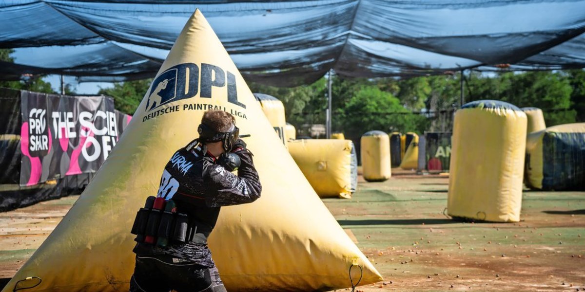 Schon nach wenigen Sekunden zerplatzt ein Geschoss am Helm von Emily Türk. Die gelbe Farbe spritzt über den Gesichtsschutz. Die 21-Jährige legt die flache Hand auf ihren Helm, um allen zu signalisieren, dass sie ausgeschieden ist. Dann verlässt sie das Spielfeld durch eine Schleuse. Innen kämpfen ihre Teamkollegen Pam und Tobi um den Sieg. Kleine Farbkügelchen schießen über das Feld und zerplatzen, wenn sie auf einen festen Gegenstand treffen. Erst scheidet Pam aus, am Ende Tobi. Die Regensburger haben das bayerische Duell für sich entschieden.