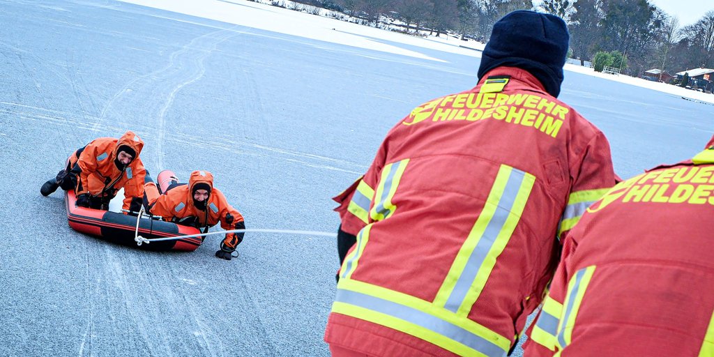 Eis auf dem Hohnsensee: Geplante Übung der Hildesheimer Berufsfeuerwehr zwischenzeitlich mit unerwarteter Dramatik