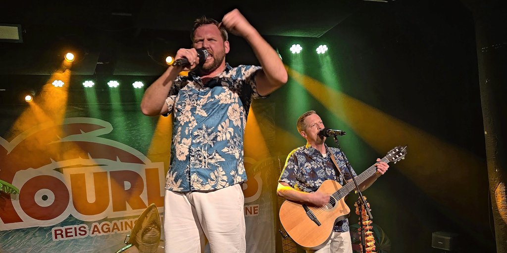 Hildesheim - Zwei Gitarren, zwei Plastikpalmen und ein großer Kunststoff-Hai stehen auf der Bühne…