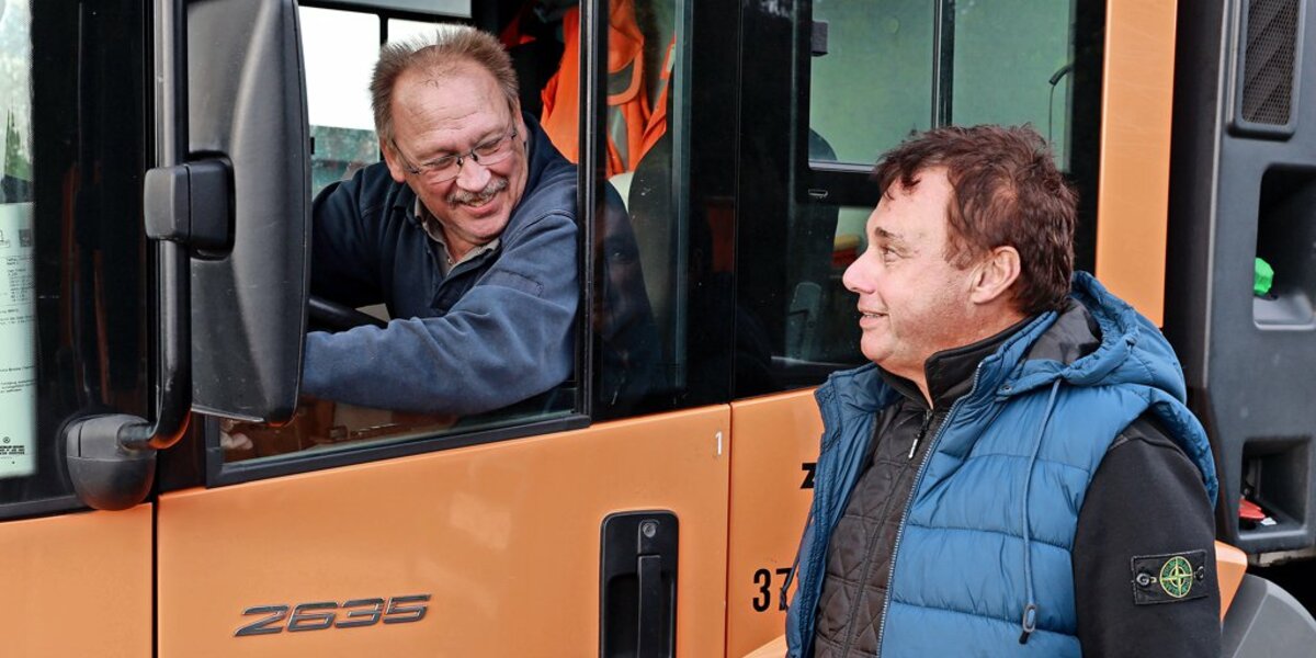 Am Tag der offenen Tür, am kommenden Sonnabend, fährt Wunnenberg von morgens um 8 Uhr an Grünschnitt. Ab Mittag wird er dann ausnahmsweise mal Fahrgäste durch die Gegend chauffieren. Denn Kinder haben am Festtag die Gelegenheit, mit den großen orangenen Lastern mitzufahren.