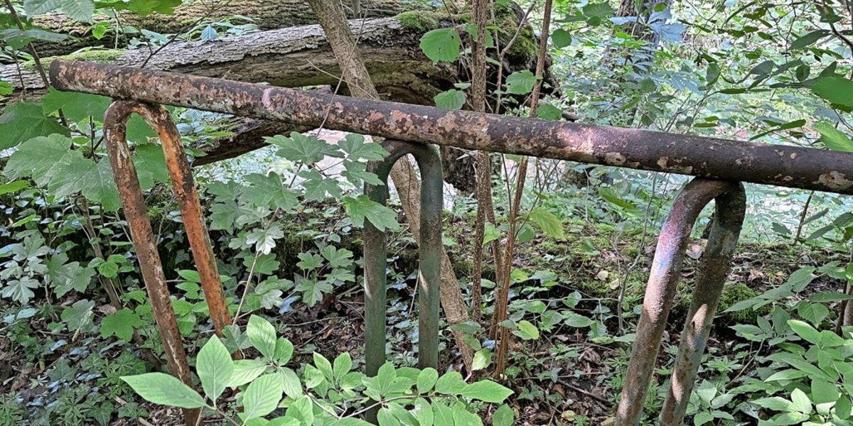 „Das waren Fahrradständer.“ Auch ein paar Reste eines Geländers liegen herum. Und weiter führt Sürig seine Begleiter durch den Wald – und berichtet von den alten Tagen.