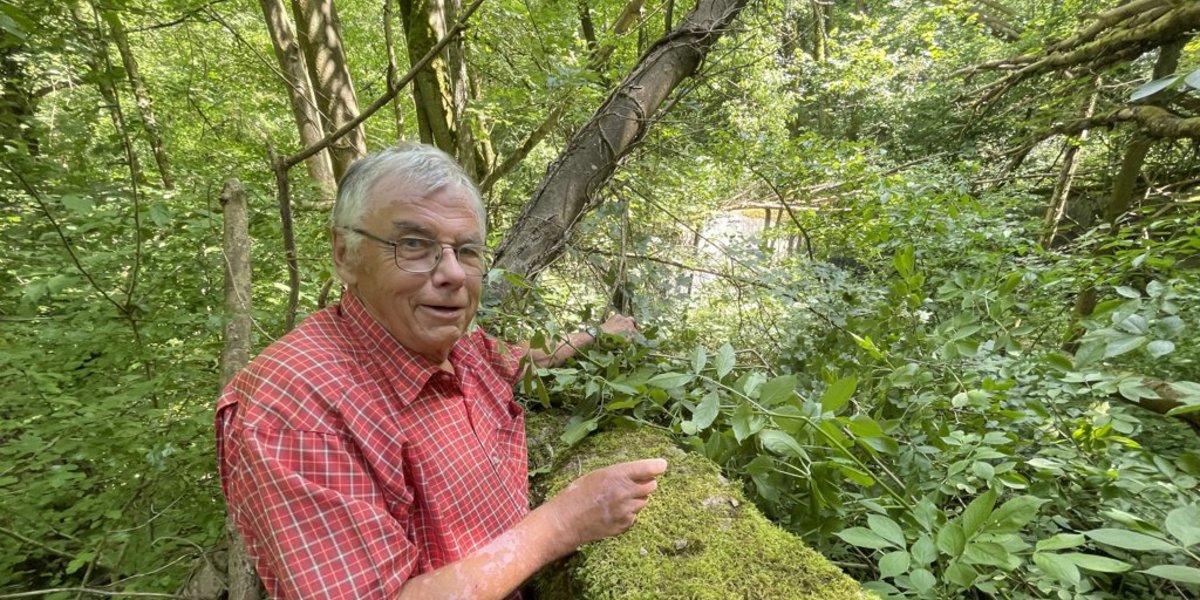 Bernd Sürig, 80 Jahre alt und Ur-Brunkenser, kennt die Gegend seit Kindesbeinen. Und den Weg durchs nur schwer zu durchdringende Dickicht. „Ich habe hier schwimmen gelernt“, sagt der Mann, der an diesem warmen Tag Kreisheimatpflegerin Paloma Klages und den Reporter von der HAZ wie ein Scout durchs Grün lotst. Es geht buchstäblich über Stock und Stein – hinein ins Gestrüpp. Geäst mit Dornen, Brennesseln, Sträucher und gefällte Bäume versperren den Weg. Mitunter kann man nur noch durchs Unterholz kriechen. Es ist anstrengend. Doch der Weg ist eben das Ziel.