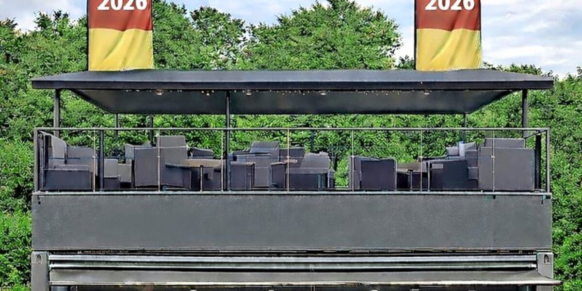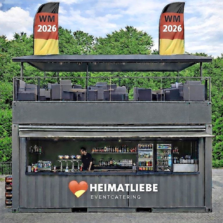 Hinzu kommt noch die Terrasse des Besucherzentrums. Dort können Fußballfans Restaurantflair genießen und nebenbei Fußball schauen. „Dieses Angebot übernimmt Jan Ruhland vom Warzer Hotel und Restaurant Grüner Wald. Wir wollten schon lang etwas gemeinsam anbieten“, freut sich der Chef von Heimatliebe. Vier weitere Container sind auf dem Areal verteilt, dort können sich die Fußballfans mit Getränken und Fingerfood versorgen.