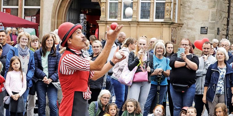 Hildesheim - Beim Hildesheimer Pflasterzauber gibt es richtig viel zu sehen. Und zu hören. Und zu probieren. Schon die ersten Acts locken am Freitag ein großes Publikum in die Hildesheimer City. Mit einer Hutjongleurin, Tänzern und auf der Fahrt durch eine Waschanlage kann das jede Menge erleben.
