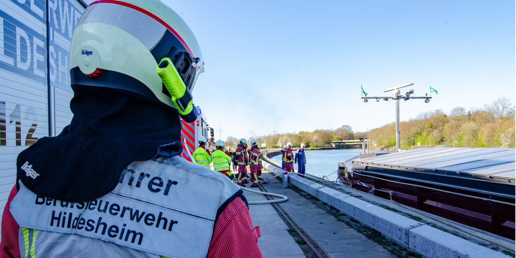 Feuerwehr löscht Brand auf Schiff im Hildesheimer Hafen