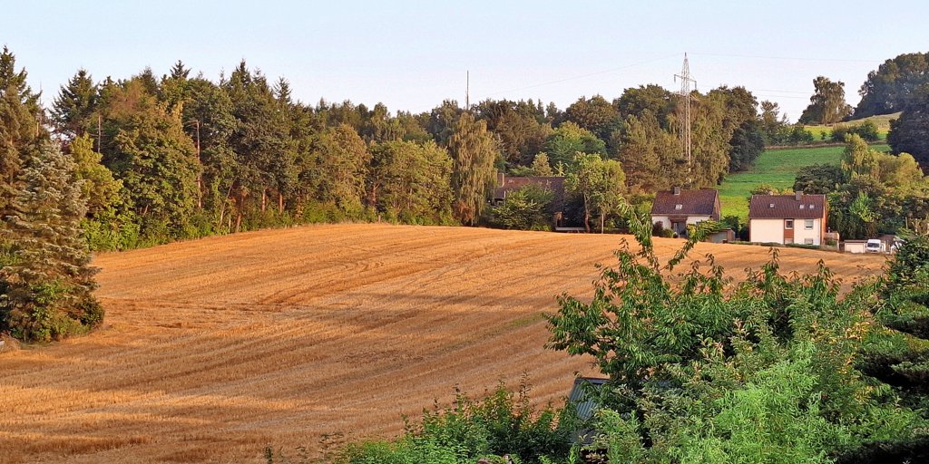 Die Sonne geht jetzt wieder jeden Tag ein paar Minuten früher unter. Gegen halb neun ist sie dieser Tage bereits hinterm Horizont verschwunden – trotzdem hat sie tagsüber noch viel Kraft. Aus ihrem Wohnungsfenster kann Charlotte Dörries aus Delligsen direkt auf eines der frisch gemähten Stoppelfelder schauen. Angestrahlt von der Abendsonne glänzt das Feld golden – und bildet einen besonderen Kontrast zu den saftig grünen Bäumen drumherum. Die Getreideernte ist nun so gut wie erledigt. Die Körner wurden bereits gereinigt und lagern jetzt zum Trocknen. Anschließend werden sie weiter zu Nahrungsmitteln verarbeitet – oder als Tierfutter genutzt. Nur noch Zuckerrüben und Mais stehen auf den Feldern im Leinebergland. Aber auch die werden nicht mehr lange zu sehen sein, denn ab September geht auch hier die Ernte los. Einzig die meterlangen Rübenberge zeugen dann noch von den Ernteerträgen dieses Jahres. Foto: Charlotte Dörries
