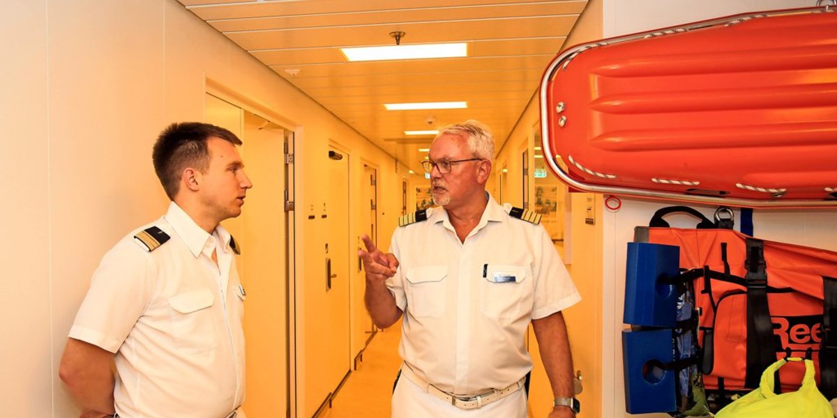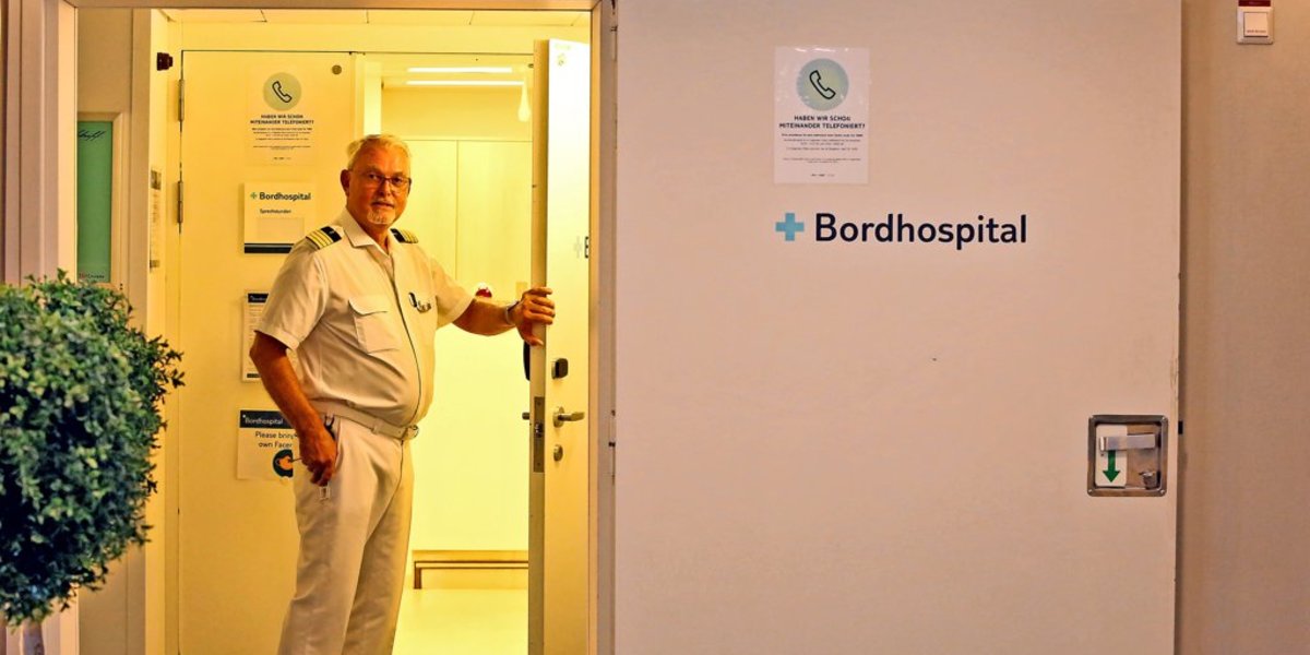 So ist das eben an Bord: Hier ist der Kapitän so etwas wie der König, die restlichen Offiziere mit den goldenen Streifen sein Hofstaat. Deren Wichtigkeit im ganz eigenen Kosmos Kreuzschiff hat schon die beliebte TV-Serie Traumschiff jahrelang in den Köpfen verankert. Und diese vorauseilende Ehrfurcht schwappt auch über auf den Hildesheimer Senior Doc – so steht es auf seinem Namensschild am Hemd. Einen Arztkittel braucht es auf dem Luxusliner nicht.