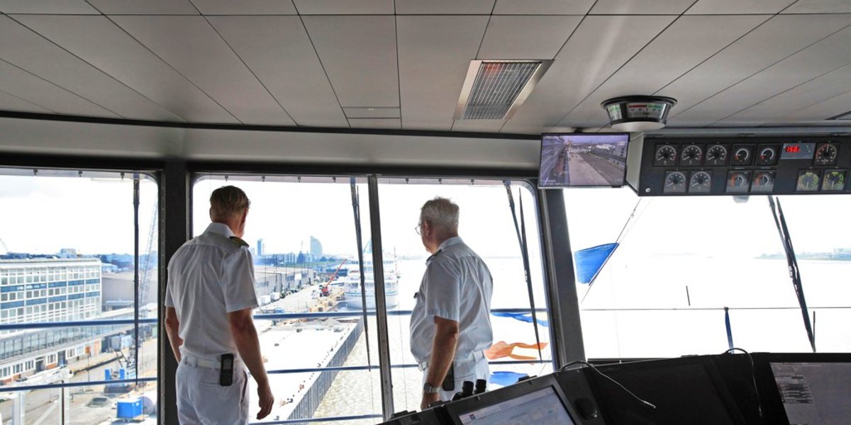 Mit schnellen Schritten ist der Arzt schon wieder weiter an Bord unterwegs, schwärmt nebenbei von der jüngsten Asien-Tour und so kulinarischen Köstlichkeiten wie Schweinebraten mit Kruste. „Sieht man leider auch.“ Er streicht sich kurz über den Bauch mit dem stramm sitzenden Hemd. Kurzer Besuch in der verglasten Kommandobrücke beim Kapitän. Bestechende Rundumsicht. Die beiden Männer kennen sich gut, haben viele Kreuzfahrten gemeinsam absolviert. Später, wenn das Kreuzfahrtschiff von Bremerhaven abgelegt hat, werden sie wie schon so oft Seite an Seite bei der feierlichen Vorstellung der Offiziere stehen. Das hat Tradition – Men in White. Den echten Kapitän wird dann nicht nur das Paar vom Swimmingpool erkennen – am goldenen Schulter-Stern. Und den Schiffsarzt aus Hildesheim? Ganz einfach: an seinen Sneakern mit den auffälligen Schnürsenkeln. Neongrün.