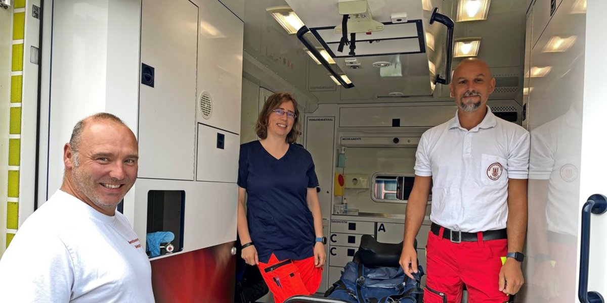„Anstehende Geburt“ – mit nicht mehr als dieser Information an der Hand sitzt Iris Winkelmann nur Augenblicke später neben dem Notfallsanitäter Yannic Osolina auf dem Beifahrersitz des Notarztfahrzeugs, gefolgt von den Rettungsassistenten Andreas Wojczyk und Florian Löwe im Rettungswagen.