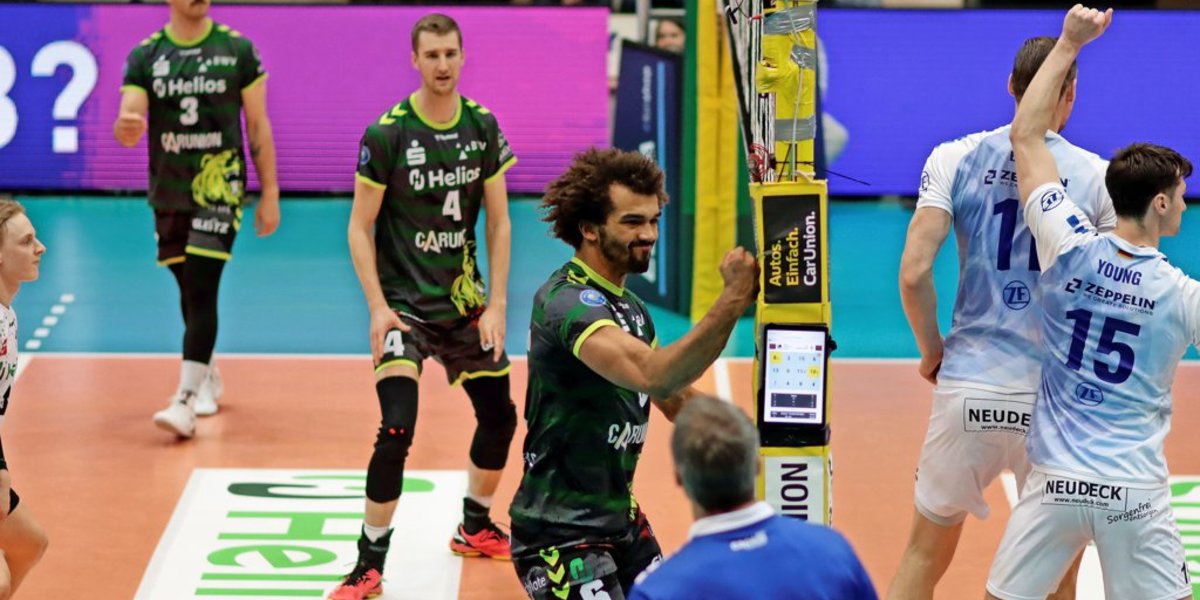 „Das zeichnet die Mannschaft in diesem Jahr aus, dass sie immer zurückkommen kann, auch nach zwei verlorenen Sätzen“, erklärte Noah Baxpöhler. „Im dritten Durchgang waren bei uns nach der Punkte-Serie des Friedrichshafeners Masso schon etwas die Köpfe unten. Wir hätten es aber dann auch schon im Vierten klarmachen können, wenn wir besser aufgeschlagen hätten.“ Da stimmte auch der Coach einmal mehr mit ein. „Wir haben eine wichtige Kadertiefe, das hilft uns enorm weiter“, ergänzte Stein. „Auch wie wir insgesamt zurückgekommen sind, war beeindruckend.“ Mantha sagte später noch: „Das war das härteste Spiel der gesamten Saison bisher, super herausfordernd. Vor allem nachdem wir uns in den ersten beiden Sätzen so gut gefühlt haben. Es braucht viel Charakter, um das Spiel dann noch so zu gewinnen.“