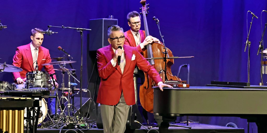 Für sein neues Programm „Bei Nacht“ hat er tief gegraben, um vergessene Schlager-Schätze von 1910 bis 1965 zu heben – wie das „Nachtlied“ vom Nachkriegs-Filmkomponist Friedrich Meyer oder „Nachts sind die Straßen so leer“, eine Single-B-Seite von Peter Alexander. Die neu arrangierten Stücke werden jazzig und sehr virtuos präsentiert von der Götz Alsmann Band. Vor allem der Vibraphonist Professor Altfrid Maria Sicking fasziniert an seinen Instrumenten, die er selbst bei komplexen Soli wie nebenbei mit vier Schlägeln gleichzeitig bedient.