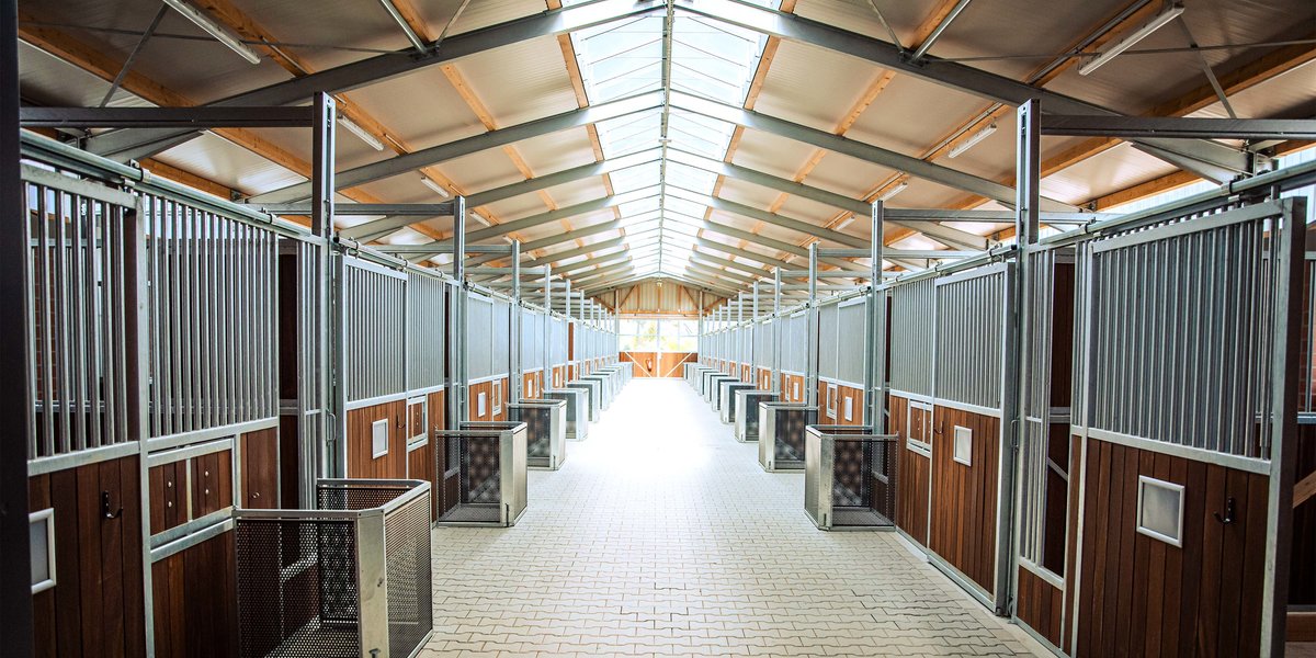 In den zwei großen Reithallen, die 30 mal 60 Meter und 40 mal 65 Meter in der Reitfläche messen, ist witterungsunabhängig Pferdesport und Reittherapie möglich. 300 Personen können auf der Tribüne Platz nehmen, für Hallensprecher und Punktrichter gibt es spezielle Kabinen.