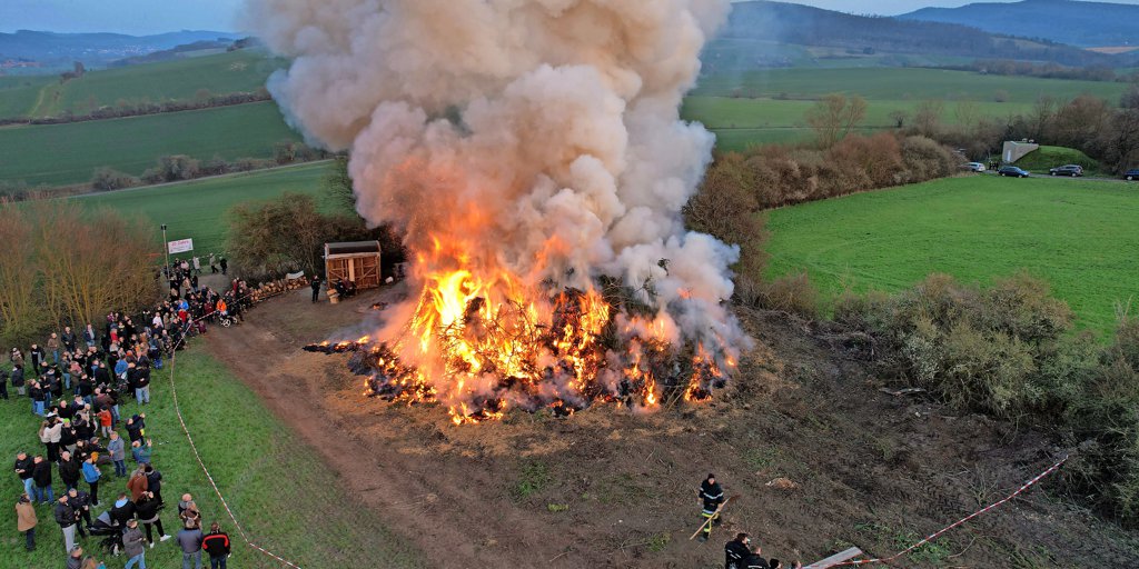 Schon Wochen vorher haben zumeist junge Leute dafür gesorgt, genügend Brennstoff zusammenzutragen. Es beginnt bereits Anfang Januar mit dem Einsammeln der ausgedienten Weihnachtsbäume. In manchen Dörfern rund um Alfeld übernehmen das junge Feuerwehrleute, andernorts haben sich im Laufe der Jahre eigene Teams gebildet, die Holz und Sträucher sammeln und anschließend zu hohen Haufen aufschichten. Wenn dann am Abend die Sonne untergeht, werden die Feuer vor Hunderten von Zuschauerinnen und Zuschauern entzündet. In Wrisbergholzen gab es früher sogar einen ganz besonderen Osterfeuerhöhepunkt: Dort rollten die „Feuerer“ eine in Brand gesetzte Tonne den Abhang hinunter und erzeugten so ein Feuerrad.