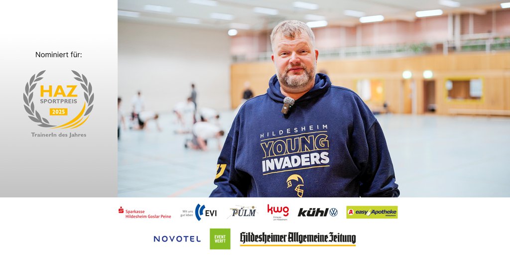 Hildesheim - In der Kategorie „Trainerin/Trainer des Jahres“ bestimmen Leserinnen und Leser, wer den HAZ-Sportpreis gewinnt. Nominiert ist auch Sebastian Klinkers von den Hildesheim Invaders – noch kann man für ihn abstimmen.