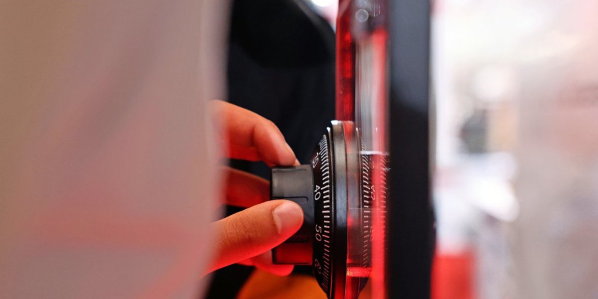 Groß ist der Andrang auch bei der Firma Kühn Sicherheitstechnik. Das Hildesheimer Unternehmen bittet zum Tresorknacken. Wer will, bekommt erklärt, wie ein dreirädriges Schloss funktioniert und welche Position der drei Scheiben er erreichen muss, damit die Tür aufgeht und er einen Gewinn mitnehmen kann. Allerdings haben angehende Meisterdiebe nur eine Minute Zeit. Wie viele Unternehmen auf der IdeenExpo gewinnt Kühn mit seinem spielerischen Ansatz ein großes Publikum.