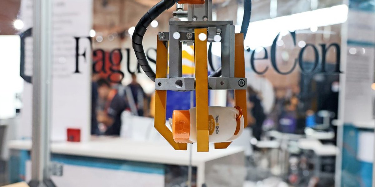 An der nächsten Ecke, in bester Lage an der Kreuzung zweier Hauptwege durch die Halle, wird eine Ausbildung zum Mechatroniker im wahrsten Sinne des Wortes greifbar. Hier hat das Alfelder Brandschutz-Unternehmen Fagus GreCon – dank des Zertifikats Top-Ausbildung von der IHK eingeladen – seinen Stand aufgebaut. Wer will, kann einen Roboter-Greifarm per Fernsteuerung bedienen und sich mit etwas Geschick kleine Geschenke aus einer Box fischen. „Da ist alles drin, was diese Ausbildung beinhaltet“, schwärmt Torge Schmidt, bei Fagus GreCon Azubi im zweiten Lehrjahr, von dem Exponat der Firma: „Metall- und Elektrotechnik, Informatik, Steuerungstechnik ...“ Ausbilder Hendrik Howind macht den Hintergrund deutlich: „Wir haben uns gefragt: Wie zeigt man eigentlich, was ein Mechatroniker macht?“