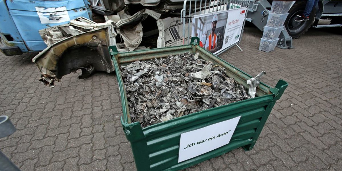 Nach so viel Konzentration tut etwas frische Luft gut. Vor einer weiteren Tür von Halle 9 wartet gleich die nächste Hildesheimer Firma: Willie Hennies Recycling präsentiert nicht nur eine Kiste mit Metallschrott und der nachdenklich stimmenden Aufschrift „Ich war ein Auto“, sondern bietet auch passend zur Fußball-EM ein Torwandschießen an. Für jeden Treffer spendet das Unternehmen für einen guten Zweck. Und wirbt zugleich für vielfältige berufliche Möglichkeiten im Recycling-Bereich. Wer mag, darf auch in eine Baggerkabine steigen.