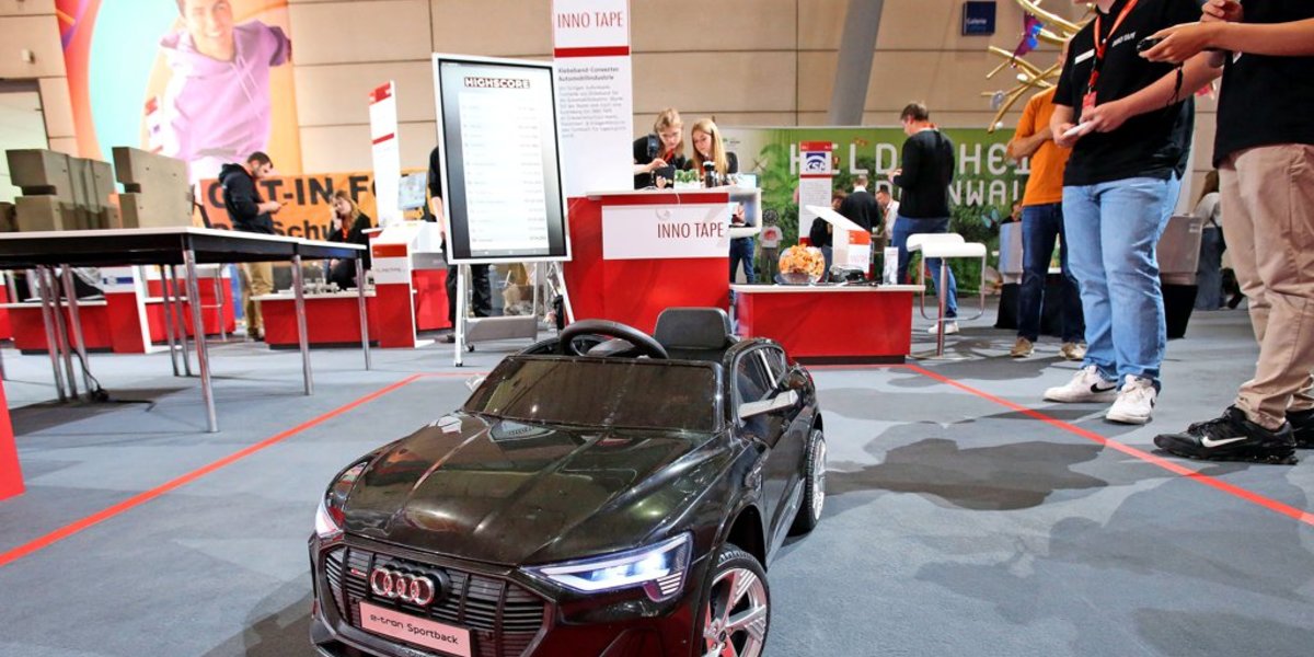 Ebenfalls im Ideenwald zu Hause ist die Realschule Himmelsthür. Schülerinnen und Schüler aus dem Technikprofil der neunten Klasse präsentieren eine gemeinsam mit der Firma Helo Sports konzipierte Solarbank, an der bis zu vier Nutzer gleichzeitig nicht nur entspannen, sondern dabei auch ihre Handys aufladen können. Es gibt inzwischen Pläne, mit dem Produkt über eine Schülerfirma in Serie zu gehen. Gleich nebenan hat der Alfelder Automobil-Zulieferer Innotape ebenfalls viel Zulauf – mit einem ferngesteuerten Auto, das möglichst schnell eine Runde fahren soll. Viele Schulklassen liefern sich dabei regelrechte Wettbewerbe. „Es ist schon unglaublich was los“, freut sich Personalchefin Anuschka Weiser, die auch den „Ideenwald“ mit konzipiert hat.