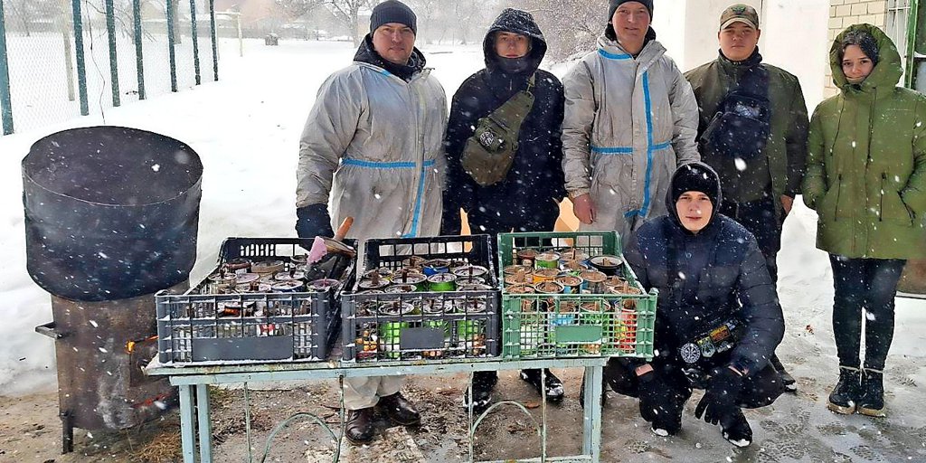 Um der Eiseskälte etwas entgegenzusetzen, schmelzen viele Ukrainer an Feuertonnen aus Deutschland gespendete Kerzen. Als Dochte verwenden sie in Streifen geschnittene Pappe. Mit dem Docht kommt das flüssige Wachs in Konservendosen, damit die Wärme der Kerze besser ausstrahlt. Diese Kerzen sind besonders unter den Soldaten sehr gefragt.