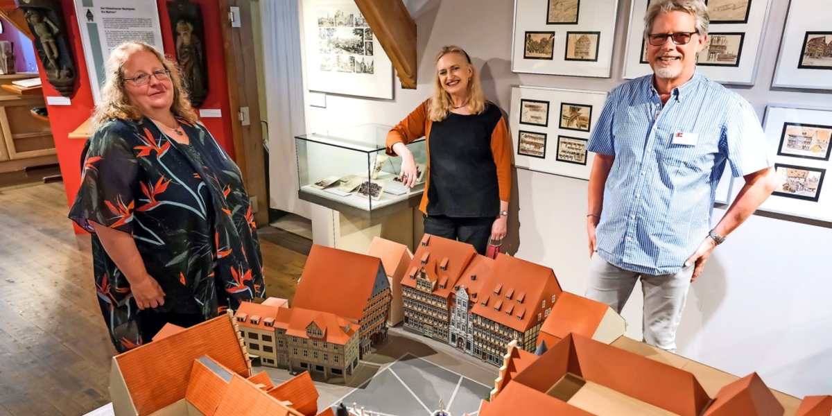 In den beiden Nebenräumen entdeckt der Besucher Planungsskizzen für andere Marktplatz-Lösungen, Presseartikel, weitere Modelle und vor allem viele Fotos, die die vielfältige Nutzung des Platzes seit den 90er Jahren zeigen. Die meisten Bilder hat Chris Gossmann geschossen und um weitere Aufnahmen aus dem HAZ-Archiv ergänzt. Wer speziell Interesse am Knochenhauer-Amtshaus hat, wird im obersten Stockwerk fündig, dem 2019 neu eingerichteten Museumsbereich.