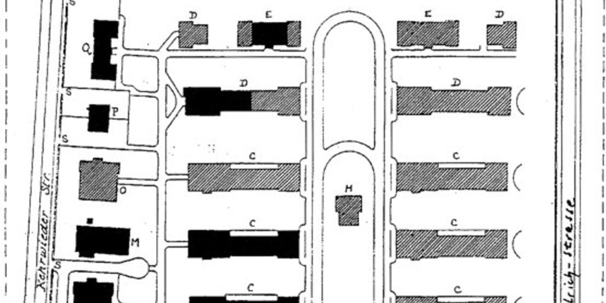 Frische Luft galt schon damals als gesundheitsfördernd, und im Gegensatz zu den stickigen, auch in den Hinterhöfen eng bebauten Straßenzügen der Altstadt kam hier der Pavillon-Stil zum Zug: Ständiges Durchlüften war in diesen kleineren Baueinheiten kein Problem.