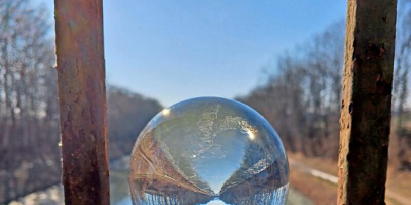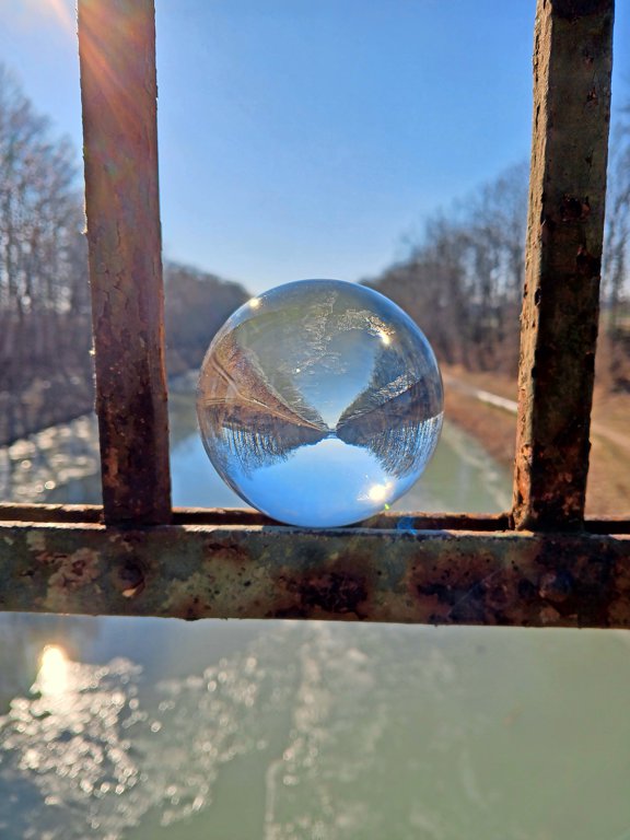Den Kanal kennen vermutlich viele, doch ein kleines Detail lässt ihn gleich ganz anders wirken. Die glatte Glaskugel bietet dabei nicht nur einen Kontrast zu der porösen Oberfläche des Brückengeländers. Sie stellt die Welt dahinter auch auf den Kopf. Was in der Kugel wirkt wie ein strahlend blauer Fluss, in dem sich die Bäume am Ufer spiegeln, ist in Wirklichkeit der Himmel. Ein Perspektivwechsel, den Petra Schwetje aus Hasede liefert. (Bild anklicken, um es in voller Größe anzuzeigen)