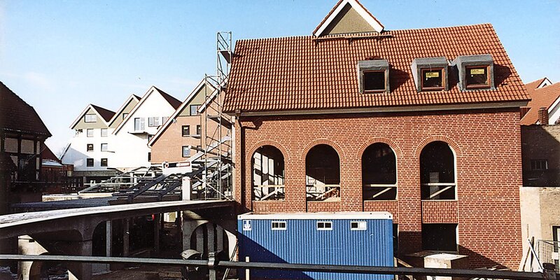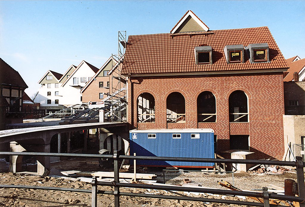 Bei der Eröffnungsfeier der Andreas-Passage am 31. August 1983 drängten sich 1400 Besucher auf den Gängen und Treppen, um sich von der gelungenen Verwandlung eines Schandflecks zu einem Herzensbauwerk, wie es damals hieß, persönlich zu überzeugen. Doch zuvor hatte es durchaus auch Irritationen gegeben – zum Beispiel um die Seufzerbrücke“, die Fußgängerquerung zwischen Andreasplatz und dem neuen Wohn- und Geschäftszentrum, die sich auf dieser historischen Aufnahme vom 24. Oktober 1982 noch im Bau befindet. (Foto: Archiv Verlag Gebrüder Gerstenberg)