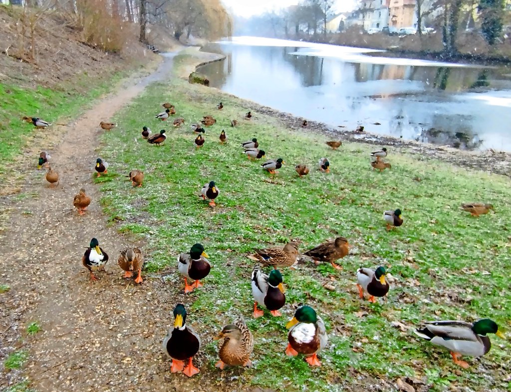 40, 41, 42, 43, 44! So viele Enten tummeln sich da plötzlich am Kalenberger Graben in Hildesheim. Wir zählen zur Sicherheit nochmal nach und fragen uns: Gab's da was umsonst? Oder haben sich die Tiere einfach verabredet, um Fotografin Martina Janssen eine kleine Freude zu machen und eine Chance für ein Enten-Wimmelbild zu geben?!