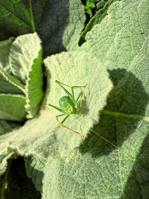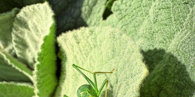 Die punktierte Zartschrecke ist eine der tausenden Heuschreckenarten, die auch in Deutschland vorkommt. Ihre Flügel sind verkümmert, fliegen können die kleinen Tiere nicht. Dafür singen sie ziemlich oft und gerne – die Töne liegen aber über den für den Menschen hörbaren Frequenzen. Wie gut sich die Zartschrecken tarnen können, beweist Kirsten Brysch mit ihrem Foto – unser Hingucker des Tages!