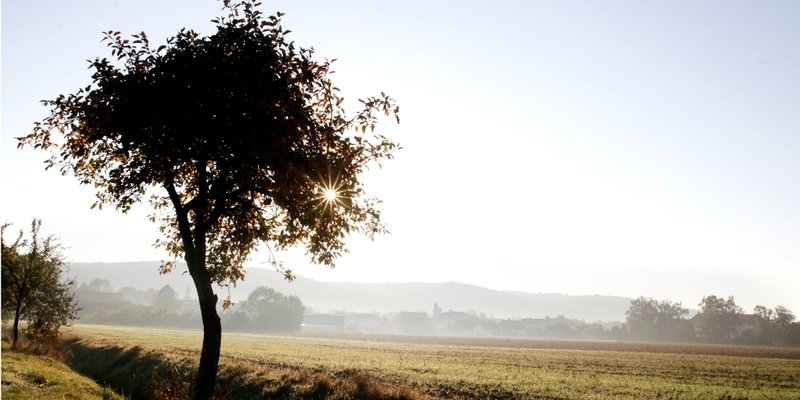 Sorsum - Freundlich und zart begrüßt die Sonne Fotograf Werner Kaiser bei leichtem Nebel in Sorsum.