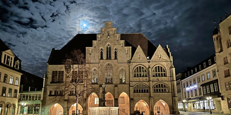 Der Hildesheimer Marktplatz, schummrig beleuchtet und unter einer verträumten Wolkendecke: So sah der Feierabend von HAZ-Redakteur Alexander Raths am vergangenen Montag aus. Auf dem Schnappschuss sind der noch nicht ganz volle Mond und der menschenleere Platz vorm imposanten Rathausgebäude perfekt in Szene gesetzt. Was für ein Hingucker!