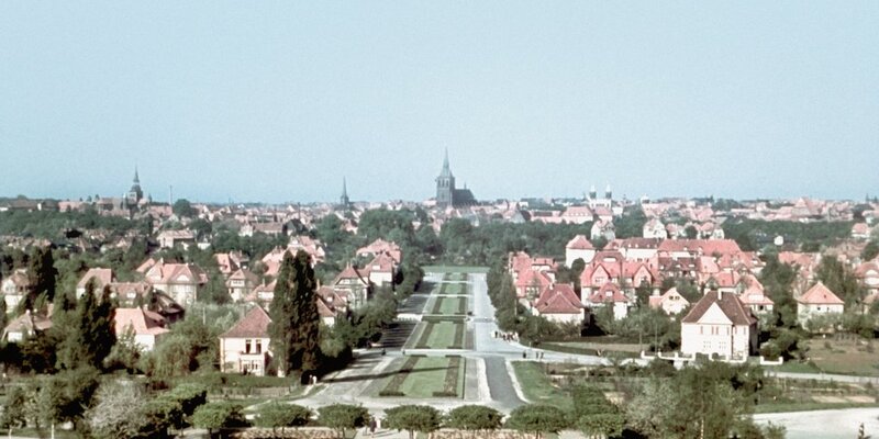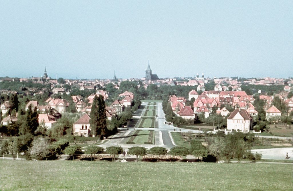 Im Winter kann man hier auch mal rodeln, sofern Schnee liegt und während aller anderen Jahreszeiten ist der Hildesheimer Berghölzchen ein beliebtes Ausflugsziel, um den Blick auf die Stadt zu genießen. Doch, Moment mal: Auf dieser historischen Aufnahme von Heinrich Ihlemann aus dem Jahr 1942 ist doch was anders. Wer hat's erkannt?