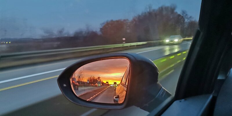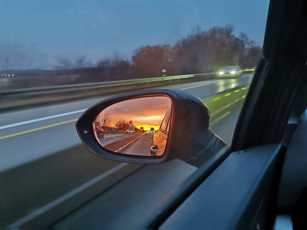 Selbstverständlich ist HAZ-Leser Matthias Schiminski bei dieser Aufnahme nur Einsender, und der Beifahrer war verantwortlich für diesen Schnappschuss auf der A7. Die Fahrt in die Nacht und ins Ungewisse – im Rückspiegel noch die letzten Spuren des Tages. Das Ganze lässt sich auch als Metapher auf das Leben beziehen: Wir fahren weiter, immer weiter, ohne genau zu wissen, was uns erwarten wird. Wir lassen Dinge zurück, die wir vielleicht noch nicht ganz losgelassen haben, während sich die Zukunft nur schemenhaft vor uns auftut. Trotzdem ist der Blick zurück, mit allem, was war, wichtig – auch wenn wir dennoch immer weiterfahren müssen.