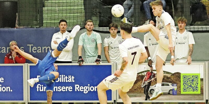 Im VIP-Raum der Halle lief derweil der Stammtisch für Vereinsvertreter. Michael Salge (links, mit NFV-Kreis-Vorsitzendem Andreas Wiese) bilanzierte über das VfV-Jahr und schwärmte vom Landespokalfinale und der DFB-Pokal-Partie. Und er äußerte eine Zielsetzung für 2025: "Wir wollen in die Regionalliga aufsteigen."