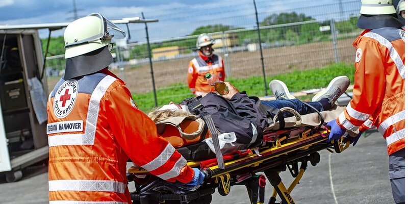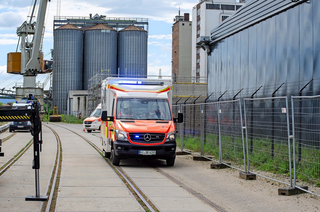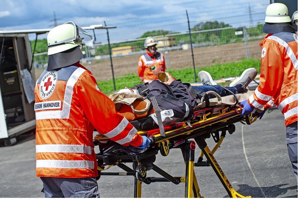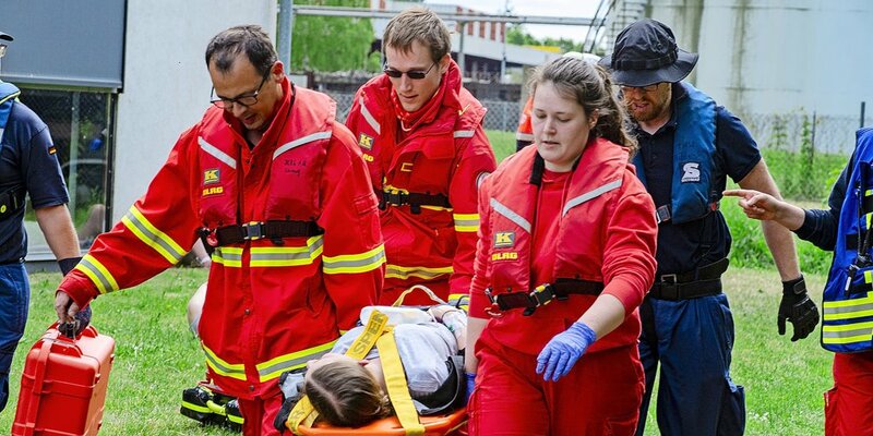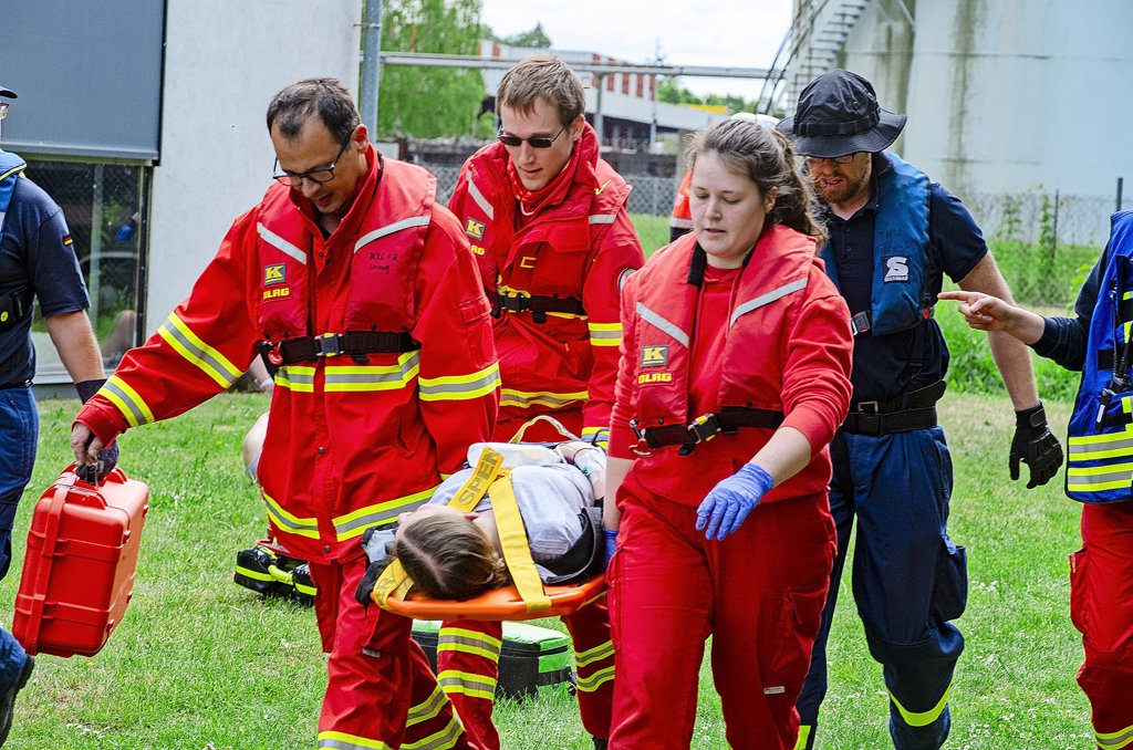 Hildesheim - Mehr als 100 Einsatzkräfte von DRK, DLRG, THW und Maltesern aus Hildesheim und Hannover sind am Samstagmorgen um 9 Uhr zu einer Großübung am Hildesheimer Hafen ausgerückt. Das fiktive Szenario: Eine Explosion in einem Recycling-Betrieb, Feuer – und dutzende Verletzte.