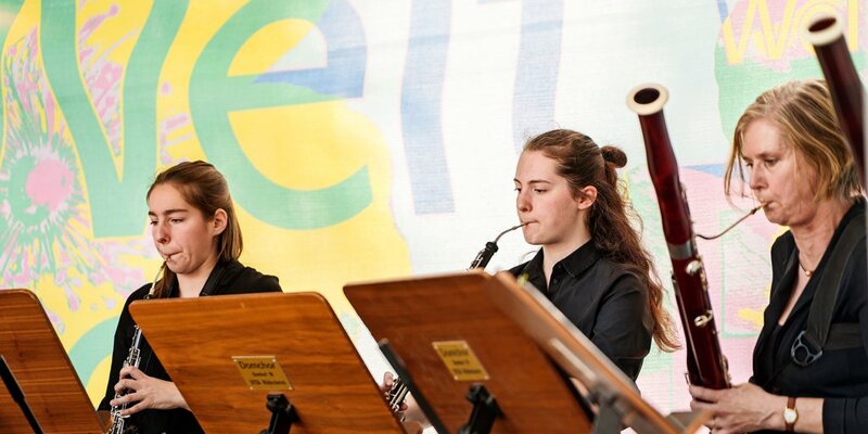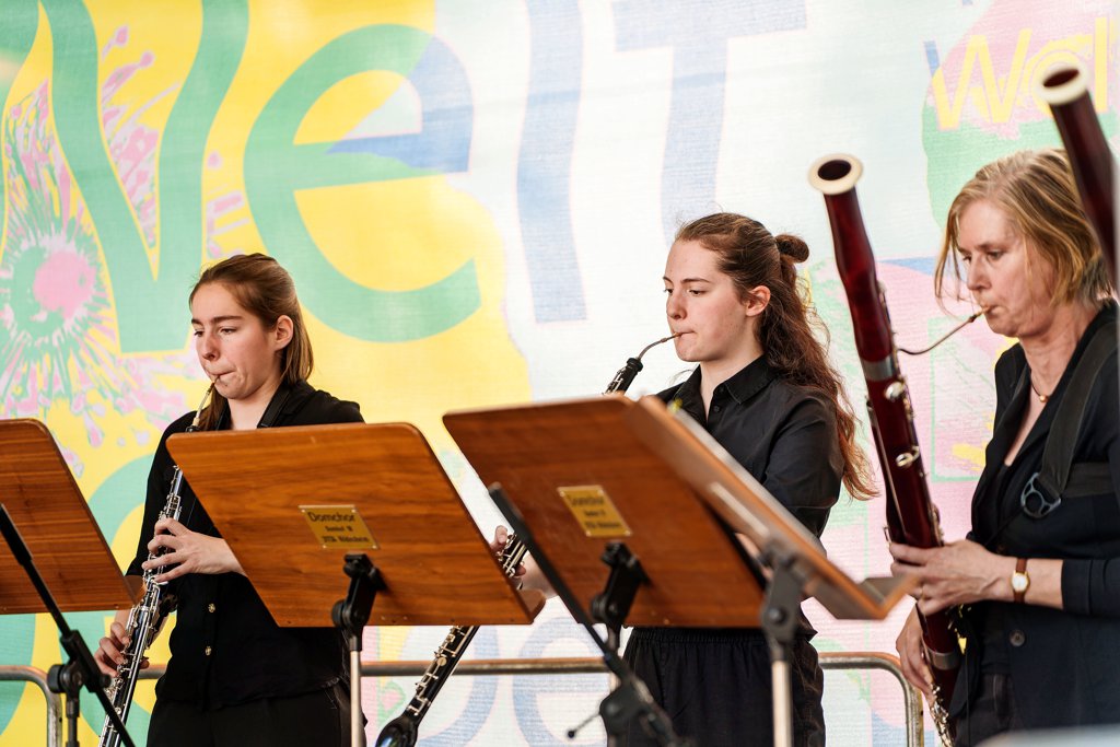 Den Auftakt vom Wandelkonzert hat das Ensemble DoppelRohr unter Leitung von Claudia Zülsdorf gestaltet. Die Gruppe kommt aus der Musikschule Hildesheim und hat ihren Namen von ihrer Instrumentengattung. Denn die Gruppe besteht ausschließlich aus sogenannten Doppelrohrblattinstrumenten wie Oboe, Fagott und Englisch Horn. Zum Auftakt haben die Mitglieder Werke von Monteverdi, Mozart und Haßler gespielt. Foto: Clemens Heidrich