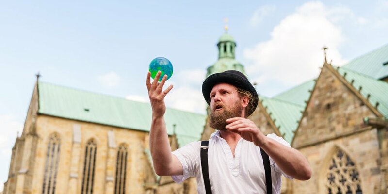 Außerdem feiert das Forum Heersum heute Premiere des Prologs seiner diesjährigen Sommerspiele. Dieses Jahr ist das Programm in zwölf Teile geteilt. Nur der Prolog spielt in Hildesheim. Danach gibt es elf einmalige Aufführungen in verschiedenen Dörfern im Landkreis und das Finale in Alfeld. Der Prolog war schnell ausverkauft. Es gibt aber eine Kurzfilmfassung, die vor jedem Kapitel nochmal gezeigt wird. Foto: Clemens Heidrich