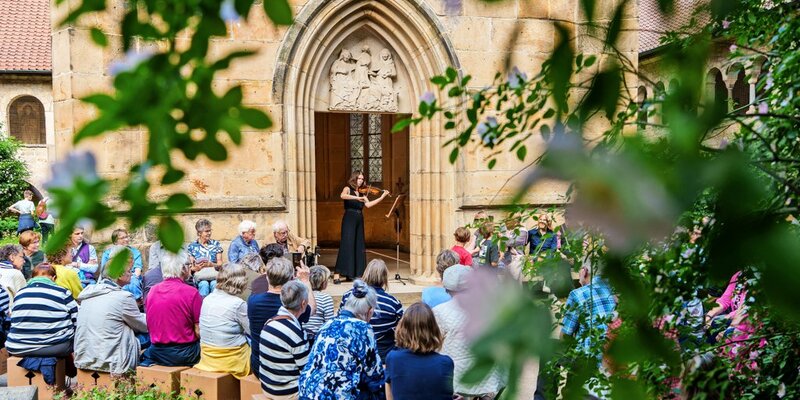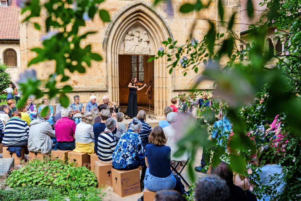 Eines der Highlights fand für viele Besucherinnen und Besucher direkt am Anfang des Welterbe-Wochenendes statt. Ein Wandelkonzert der „Dommusik & Friends“ führte am Freitag durch den Dom. Zu erleben gab es dabei Konzerte an außergewöhnlichen Orten. In der Annenkapelle hat zum Beispiel Violinistin Iris Maron gespielt. Zwischen Kreuzgang und Rosenstock gab es dann Werke von Bach und Biber zu hören. Foto: Clemens Heidrich