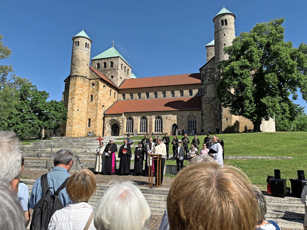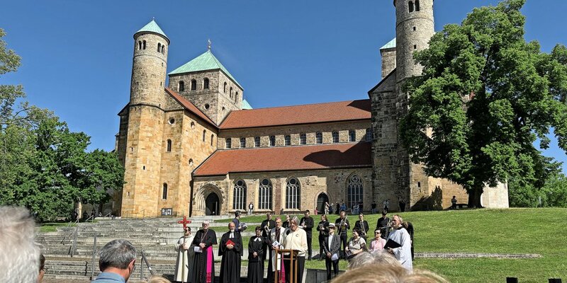 Denn dort, erst vor, dann in der Michaeliskirche, endet der Gottesdienst. Sowohl Bischof Heiner Wilmer als auch die scheidende Regionalbischöfin Adelheid Ruck-Schröder gestalten den Gottesdienst. Im Dom spricht die künftige Präses der Evangelischen Kirche von Westfalen. in St. Michael wiederum spricht dann der höchste Katholik im Bistum Hildesheim. Foto: Björn Stöckemann
