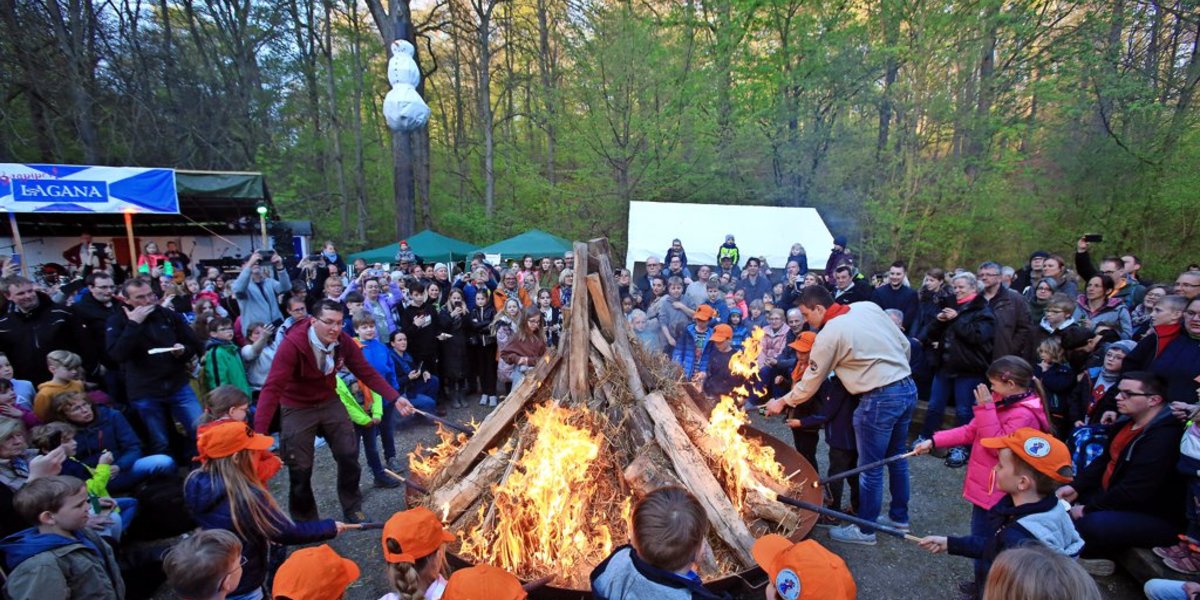 Diekholzen - Nach drei Jahren zwangsweiser Pause ist die Lust, mit den Pfadfindern zu feiern offenbar riesig. Der Andrang zur Walpurgisfeier in Diekholzen am Sonntagabend ist enorm. Im Bereich des Südwaldes ist jeder freie Fleck zugeparkt, Menschenströme marschieren das letzte Stück zu Fuß zum Pfadfindergelände, auf dem der Scheiterhaufen für den Schneemann schon aufgebaut ist, denn Hexen werden in Diekholzen nicht verbrannt. Die jüngsten Pfadfinder, die Wölflinge, zünden den Holzhaufen an. „Das war der Winter, ab jetzt gibt es nur noch Sonnenschein“, ruft Christoph Glados, Vorsitzender des Fördervereins der Pfadfinder, in die Menge. Zuvor erklärte er, der Schneemann habe weder Geschlecht noch einen Namen.