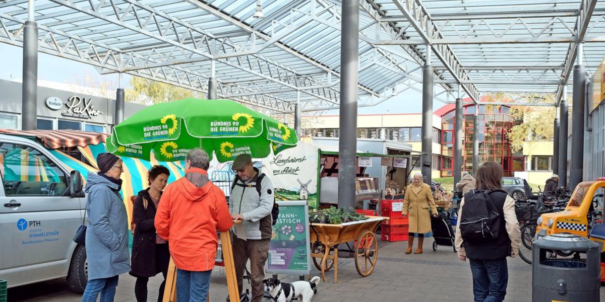Am Freitagvormittag hatten die Grünen einen Informationsstand inmitten des Marktgewimmels – auch um mit Bürgern und Bürgerinnen über die anstehenden Themen der Ortsratssitzung zu sprechen. Dazu gehören auch die Pläne zur Verkehrssituation und seit kurzem die Debatte zu den geplanten neuen Flüchtlingsunterkünften.
