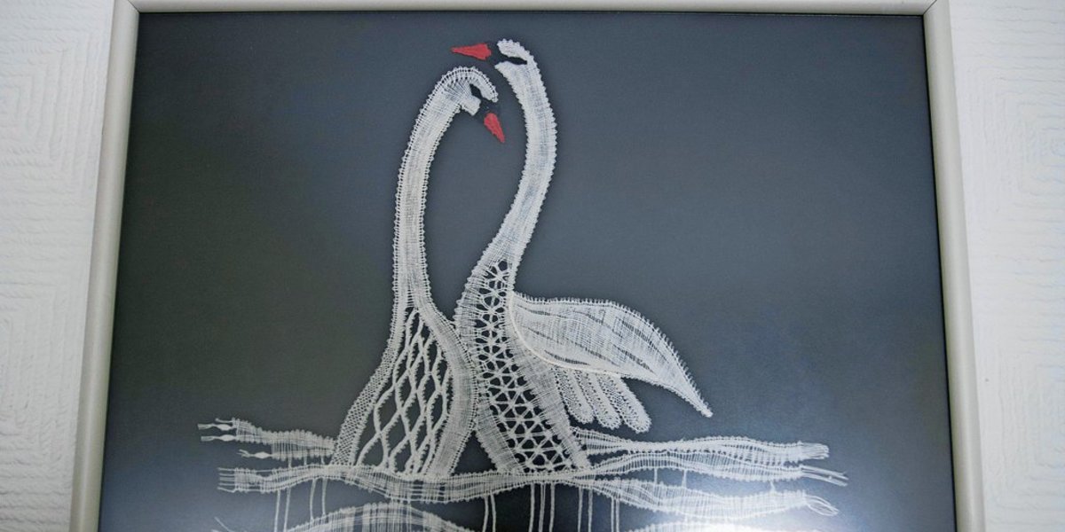 Auf dem Weg in die Küche, um dort einen Kaffee aufzusetzen, zeigt Irmgard Kleeberg einige Klöppelarbeiten. Mit 50 Jahren hatte sie das Hobby für sich entdeckt. Nun wollen ihre Augen nicht mehr so und sie musste die Kunst aufgeben. Im Schlafzimmer hängt im Rahmen ein umschlungenes Schwanenpaar aus zarter Spitze, von ihr gefertigt. In der Küche, die den Charme der 1970er Jahre hat, mit orange-weißer Brotmaschine und orangener Arbeitsplatte, baumelt an der Speisenkammertür ein alter Hampelmann. Ebenfalls Kunst aus dem Erzgebirge. Sie zieht an der Kordel und die Figur streckt die Beine und die Arme in die Höhe. „Den bekommt mein Urenkel mal“, sagt sie. Leon wird im Oktober zwei Jahre alt. Trotz des Altersunterschiedes von mehr als 90 Jahren spielen sie mit dem Kleinen, wenn er zu Besuch ist.