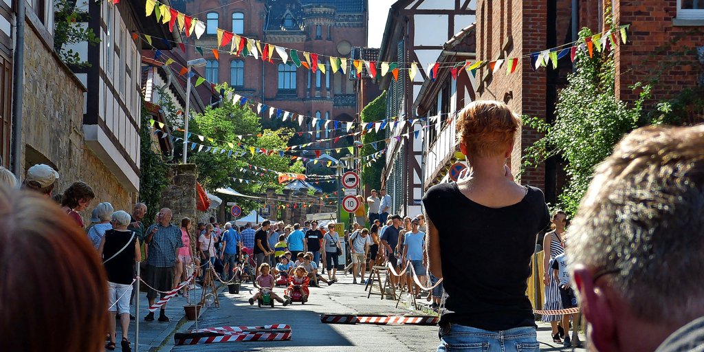 Die Sieger des Bobby-Car-Rennens sollen um 17 Uhr auf der Bühne geehrt werden. Danach stehen noch weitere Acts im Programm: Donkey Bridge (17.30 Uhr), No Twins (18.30 Uhr), Blind Heinzz (20 Uhr) und Join (21.30 Uhr). Ein Highlight soll außerdem die Skulptur-Versteigerung um 17.15 Uhr auf der Bühne am Brunnenplatz sein. Das Bergfest beginnt am Samstag (23. August) ab 14 Uhr an der Bergstraße des Moritzbergs.