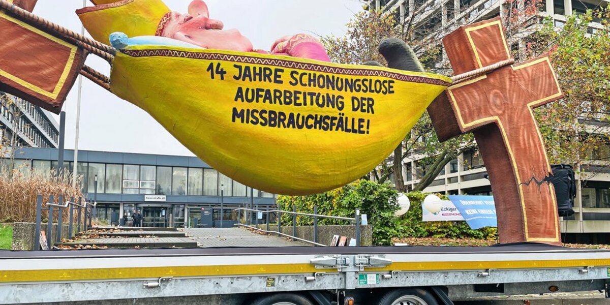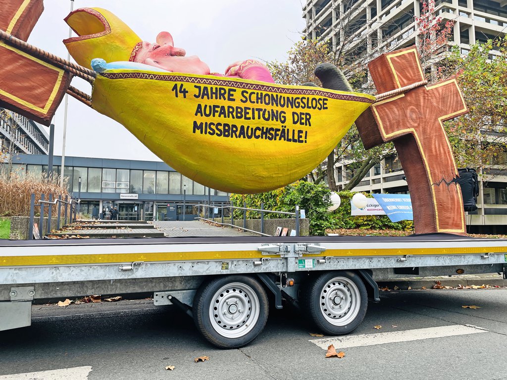 Vor dem Landgericht Hildesheim protestierten Missbrauchsbetroffene gegen die Haltung des Bistums Hildesheim. Sie verlangen, dass alle Bistümer und Ordensgemeinschaften in Deutschland in Zivilprozessen von Missbrauchsopfern auf die sogenannte Einrede der Verjährung verzichten.
