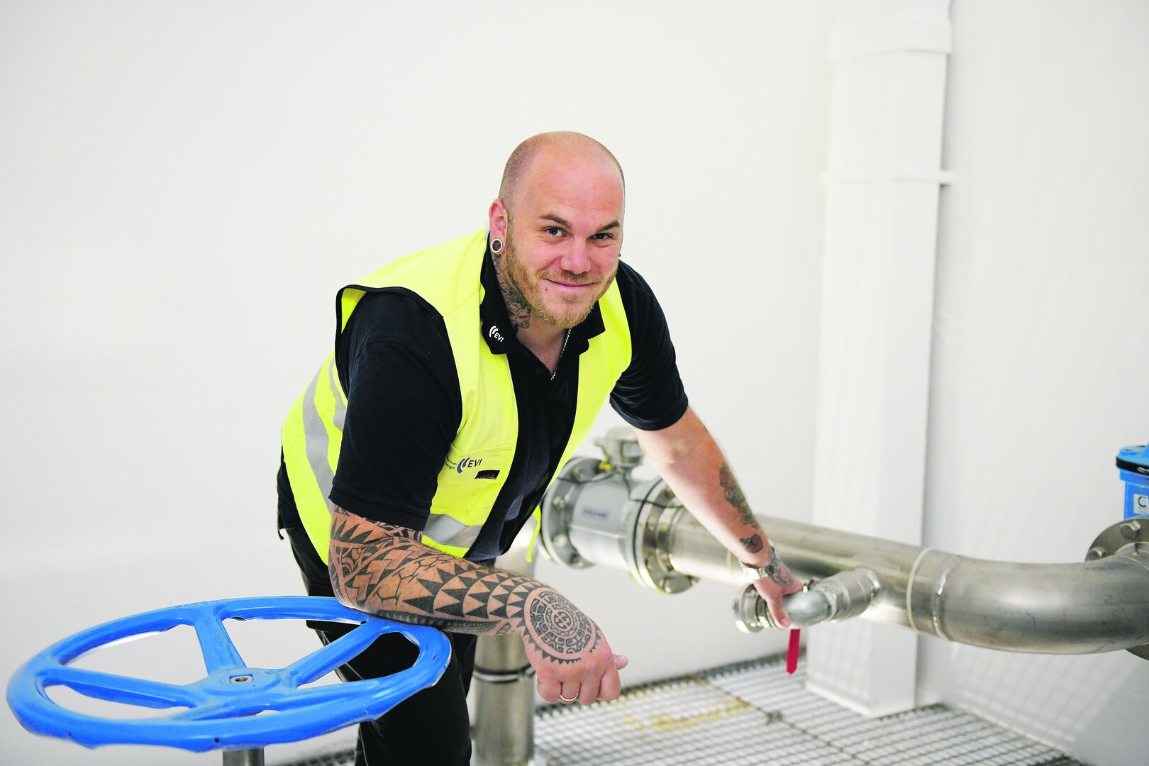 Zur Überwindung der Höhenlagen in Hildesheim sind zudem fünf Druckerhöhungsanlagen, also Pumpstationen im Einsatz. Diese Pumpen fördern das Wasser dort durch die Leitungen, wo der natürliche Wasserdruck zum Transport nicht ausreicht. Der Druck im Netz liegt zwischen 1,5 bis 12 Bar. Das bedeutet eine Menge Arbeit, die von Expertinnen und Experten der EVI 365 Tage im Jahr und rund um die Uhr geleistet wird. Einer von ihnen ist Nicholas Johnson. Er leitet die Abteilung Gas-/Wasserversorgung bei der EVI und ist seit 2016 im Unternehmen. Gemeinsam mit seinem Team betreut er die Wasseranlagen und das Wassernetz. Zu den Aufgaben der Abteilung gehören zum Beispiel die Reinigung der Hochbehälter, das Warten von Druckminderschächten, in denen der Versorgungsdruck geregelt wird, sowie die Spülung von Hydranten. Dabei steht die Qualität des Trinkwassers immer im Fokus.