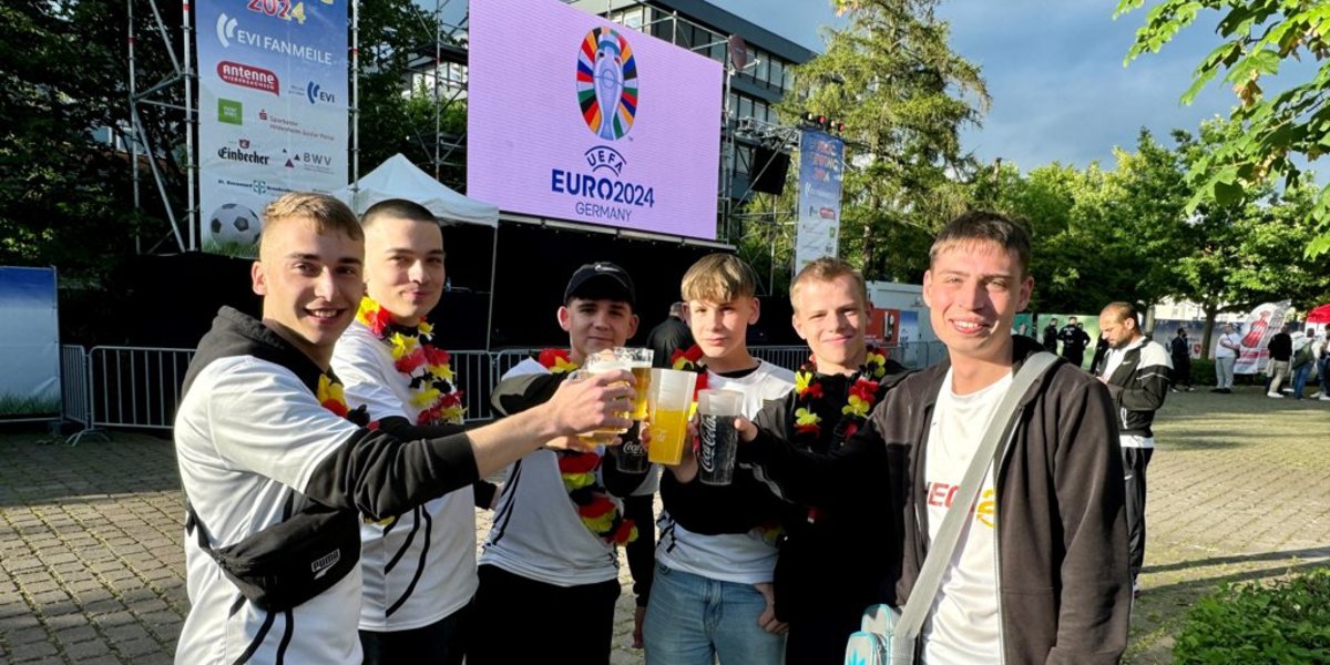 Hildesheim - Das erste Spiel der Fußball-Europameisterschaft ist gestartet. Um 21 Uhr war Anpfiff in München: Auch beim Public Viewing in Hildesheim füllen sich die Reihen. Zum ersten Mal wird der Parkplatz des Novotels zur großen EVI Fanmeile. Knapp 2500 Fans können hier gemeinsam auf einer 30 Quadratmeter-Großbildleinwand in LED-Technik die Spiele verfolgen.