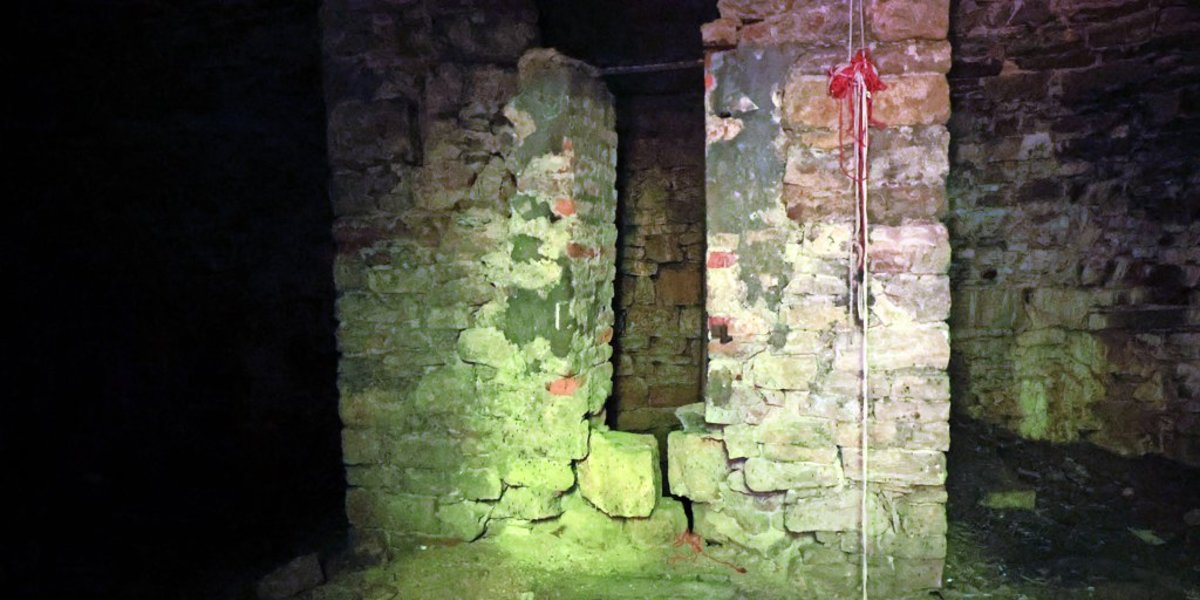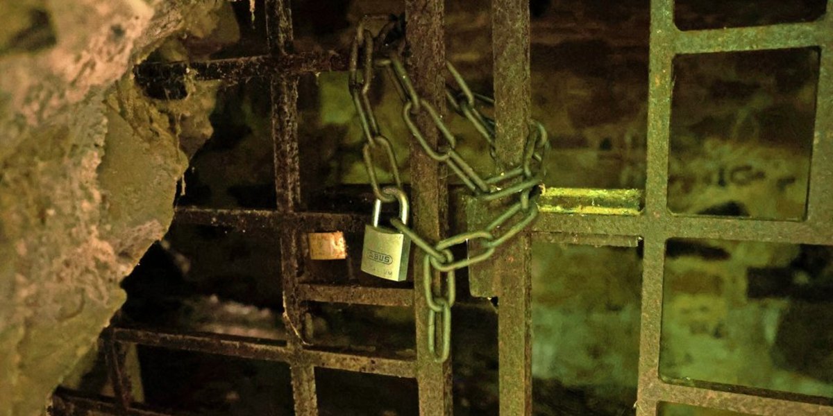 Doch obwohl die Eingänge nun verschlossen sind, kann man einen guten Eindruck bekommen. Geht man die paar Schritte nach unten zum Zugang des Gewölbes, sinkt schlagartig die Temperatur. Es riecht modrig. Blickt man durch die mit Spinnweben verzierten Gitter, schaut man zunächst nur in die Dunkelheit.
