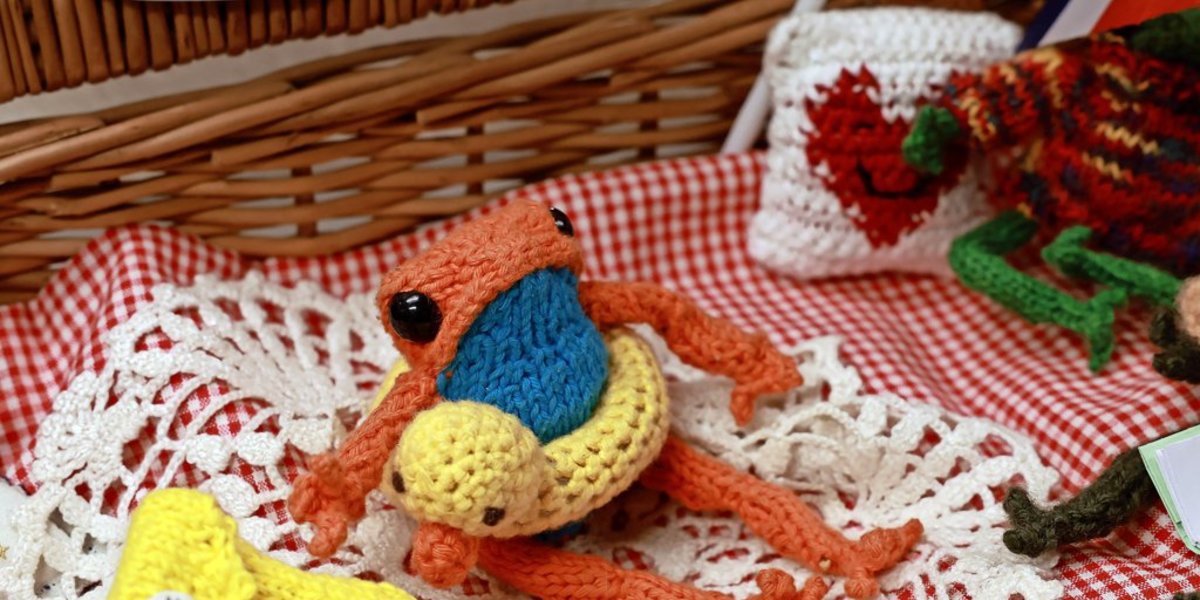 Stricken hat sich Bernadas Cavallini hingegen erst vor einem Jahr selbst beigebracht. Mit Hilfe von Videos im Internet, freundlichen Damen im Strickwarenladen und netten Omis am Bahnsteig, wie sie erzählt. „Stricken in Zügen sorgt für viele Gespräche.“ Ihr erster Frosch ist während der Proben und der Premiere ihrer ersten tfn-Produktion entstanden.