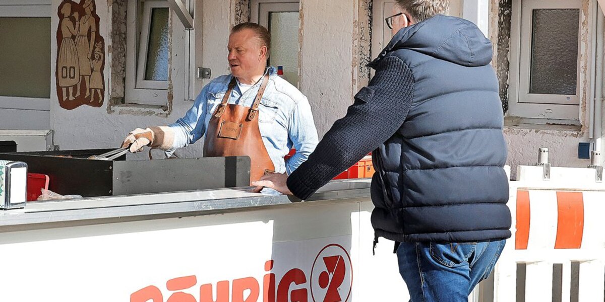 Hildesheim - Es ist 14.30 Uhr im Hildesheimer Friedrich-Ebert-Stadion, eine halbe Stunde vor Anpfiff, und an der Nordseite herrscht bereits Hochbetrieb: Während sich die Spieler des VfV Borussia 06 langsam warmlaufen und die Haupttribüne noch verwaist ist, tummeln sich die ersten Zuschauerinnen und Zuschauer bereits vor den Wurst-, Pommes- und Bierbuden. Mittendrin: der „Röhrig: Wurst- und Fleischspezialitäten“-Stand von Peter Röhrig. Für die Kunden kein schlechter Platz: Bier und Bratwurst sind nah, auch hat man hier eine gute Übersicht auf das Spielfeld. Ein paar alteingesessene Fans des VfV 06 haben sich wohl deshalb genau davor versammelt. „Das sind unsere Bundestrainer“, sagt Röhrig und schmunzelt.