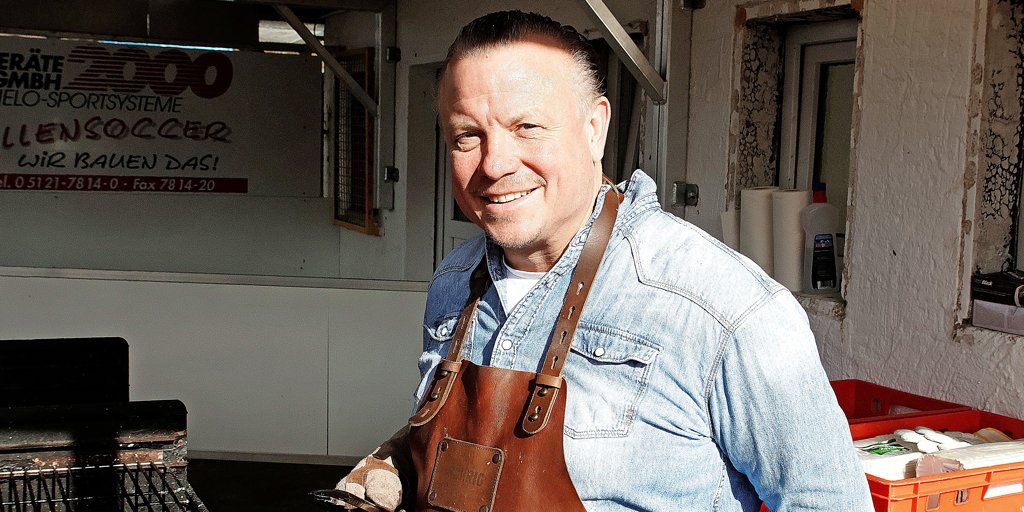 15 Minuten vor Anpfiff drängeln sich immer mehr Leute um die Bude. Röhrig wendet die Schinkengriller, nimmt Bestellungen entgegen, klönt währenddessen mit den Kunden, reicht die Würste, nimmt Geld an. Wer sich von außen den Trubel und die lange Schlange anschaut, vermutet alles – aber keine Erholung. Doch für Peter Röhrig ist das der perfekte Ausgleich: „Es ist so, dass du hierherkommst und irgendwo deine Gedanken losgelöst sind von deinem Tag“, erklärt er, während er die nächste Wurst wendet. „Wenn du hierher fährst, hat das alles gar nichts damit zu tun, was du sonst so machst. Du bist völlig losgelöst von deinen Gedanken.“